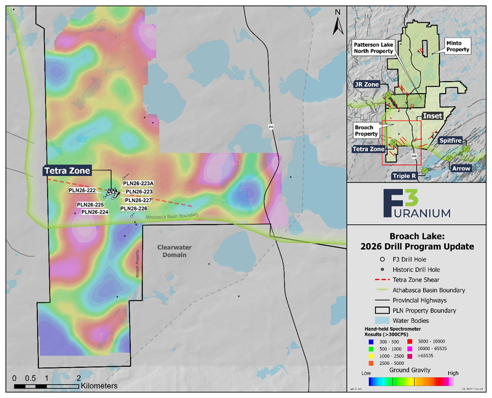 Kelowna, British Columbia— (Newsfile Corp. – April 22, 2026) – F3 Uranium Corp (TSV: FUU) (OTCQB: FUUFF) (“F3” or “the Company”) is pleased to announce encouraging results from its recently completed winter 2026 diamond drilling program at the Tetra Zone on its 100% owned Patterson Lake North (“PLN”) Project in the Athabasca Basin, Saskatchewan.